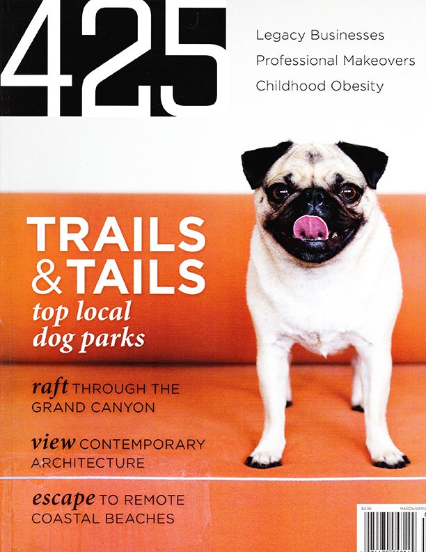 Erin’s work was proudly featured on the cover and within the pages of 425 Magazine, alongside an article celebrating local dog parks.
